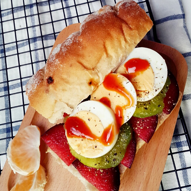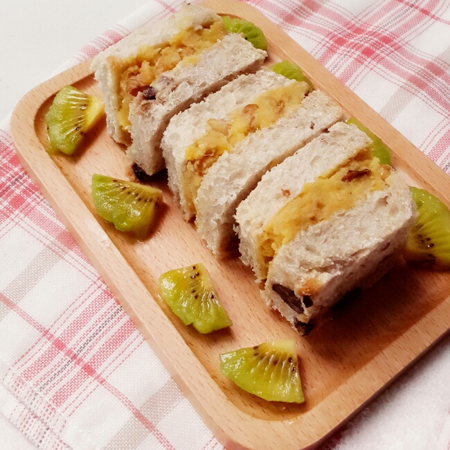 地瓜沙拉三明治。以前在一本韩食书上看到过的小方子。三明治总是有无限创意。