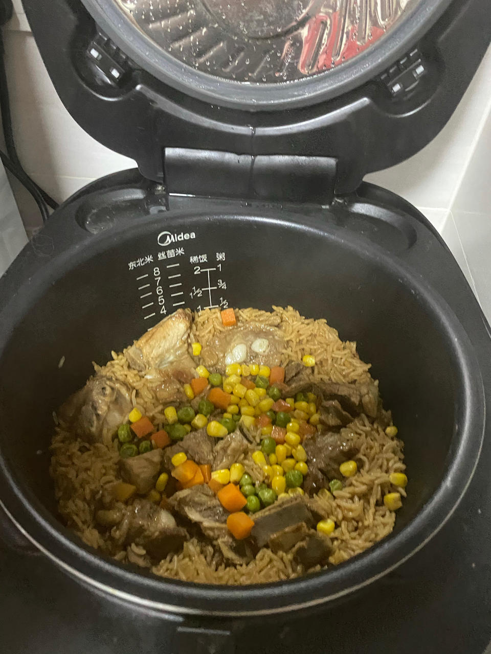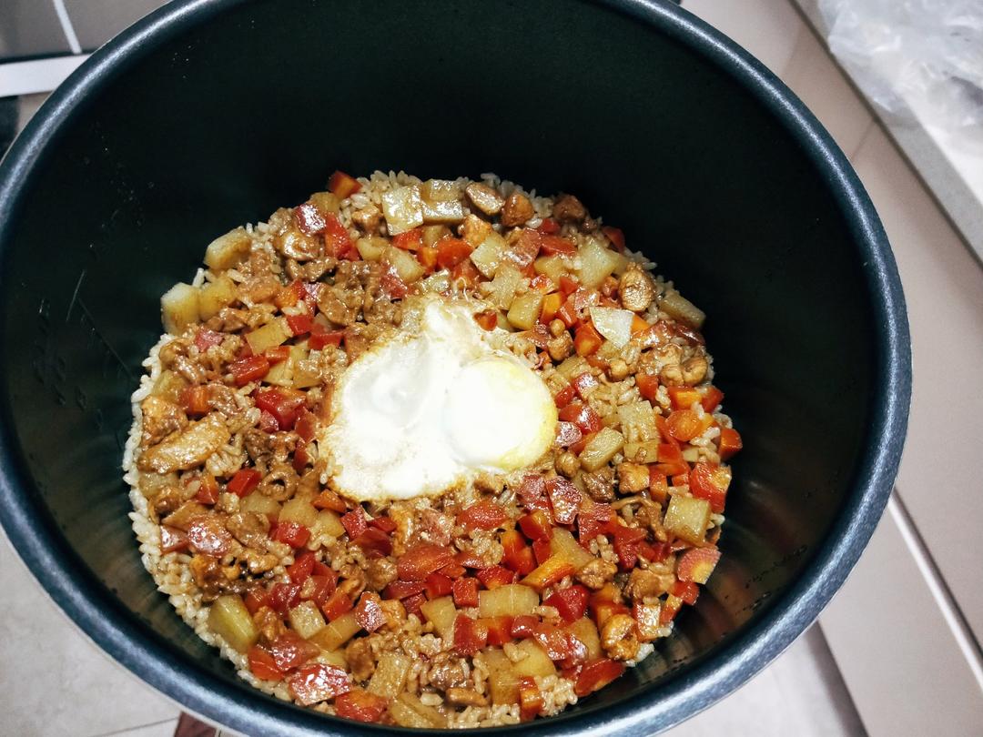 前两天晚上做的电饭锅焖饭,好吃又管饱,可以把想吃的菜放进去一起煮,很棒