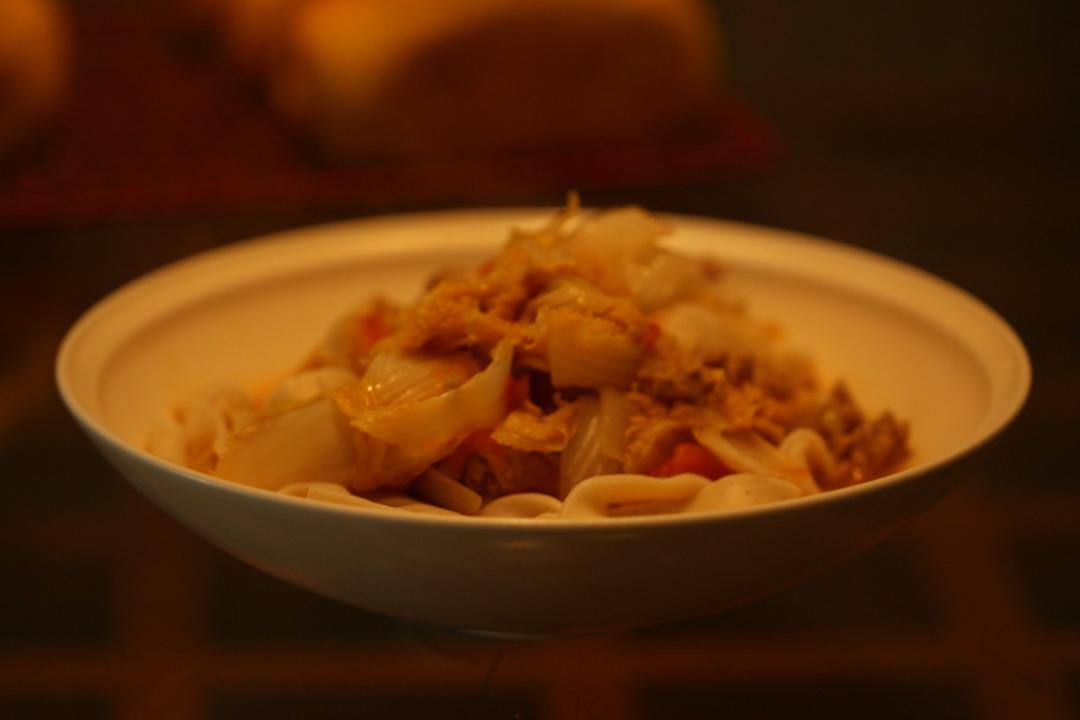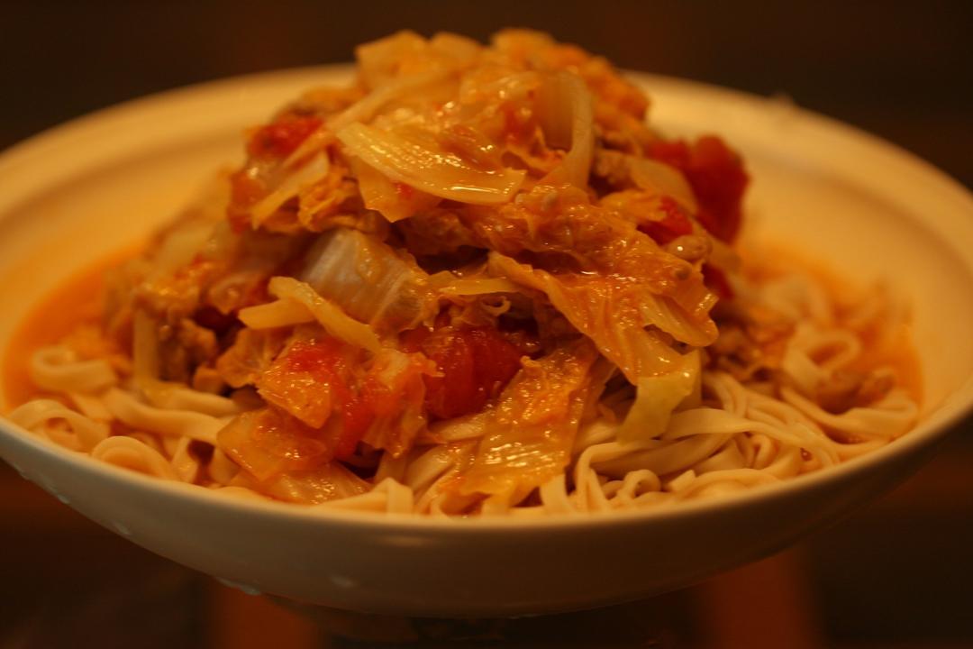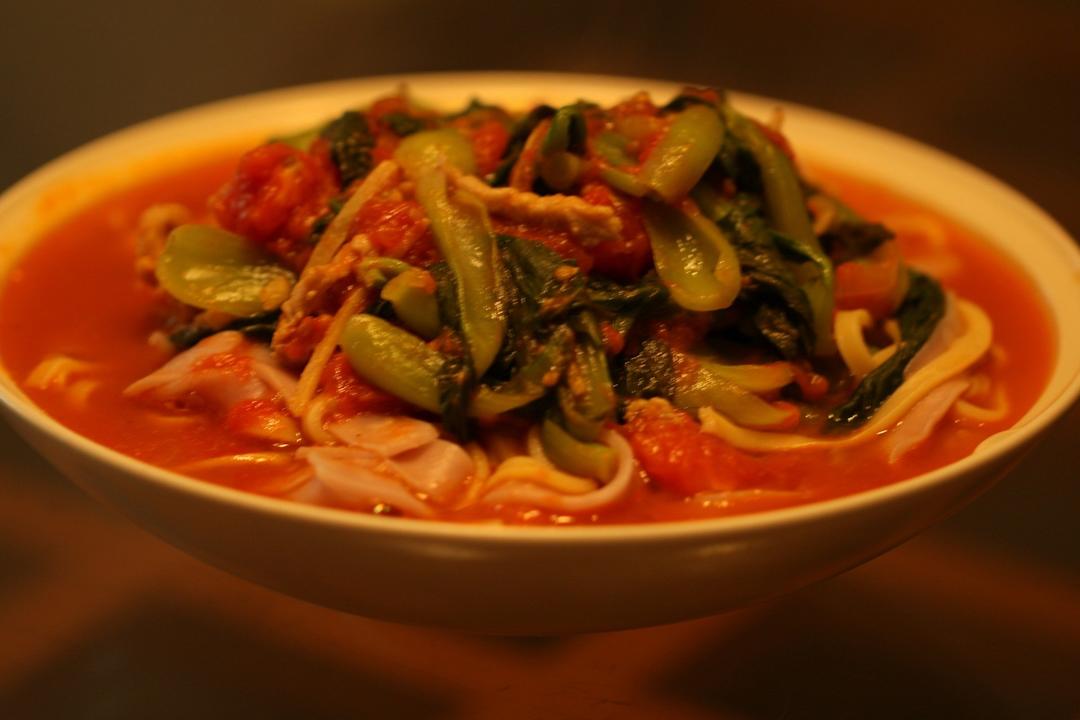 一人午饭:西红柿娃娃菜肉丝面