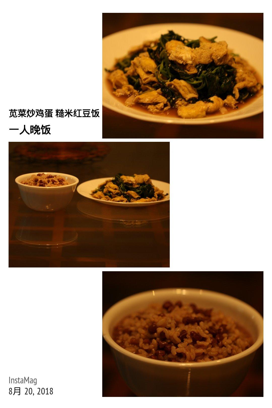 一人晚饭:苋菜炒鸡蛋,糙米红豆饭