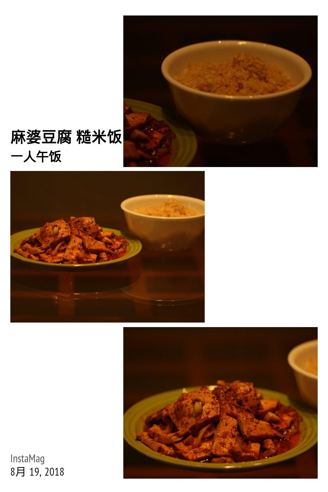 一人午饭:麻婆豆腐,糙米饭。