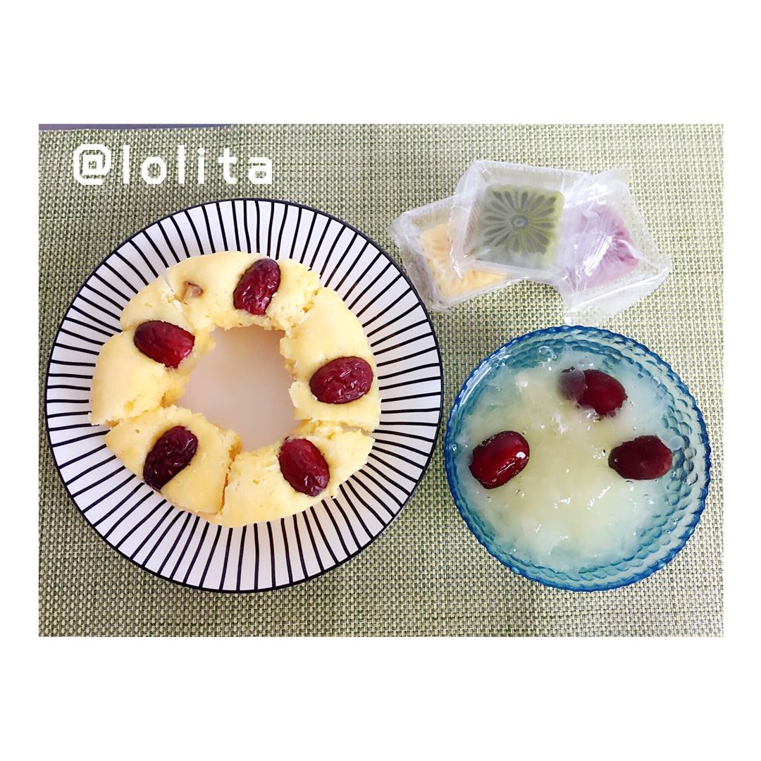 ☀️玉米面发糕+红枣银耳羹+鸡蛋软饼+各式糕点~