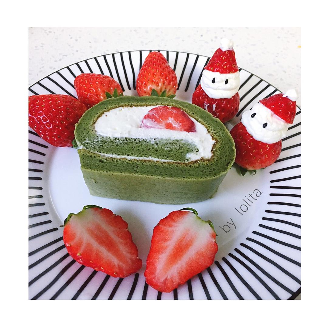 #抹茶草莓卷#