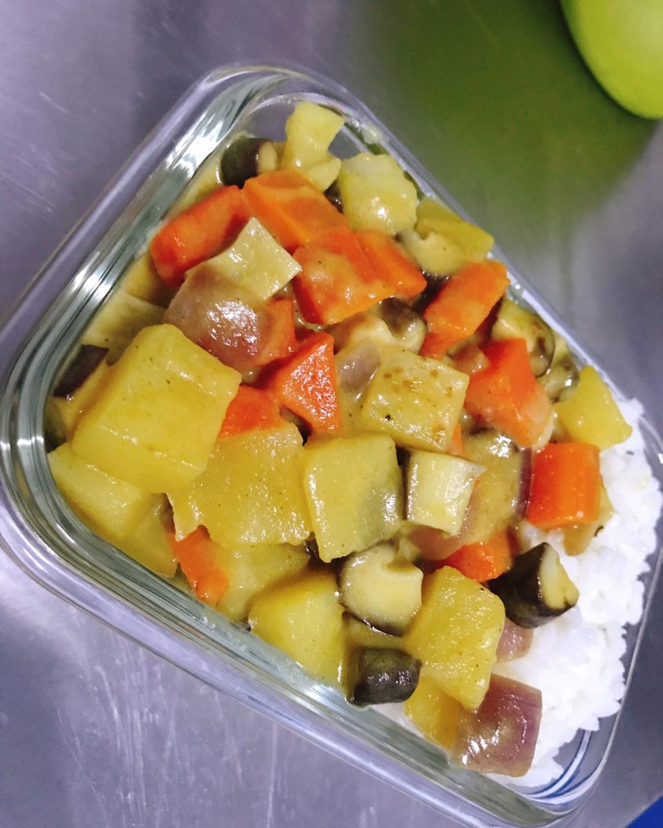 鸡腿换成香菇,素咖喱便当记。