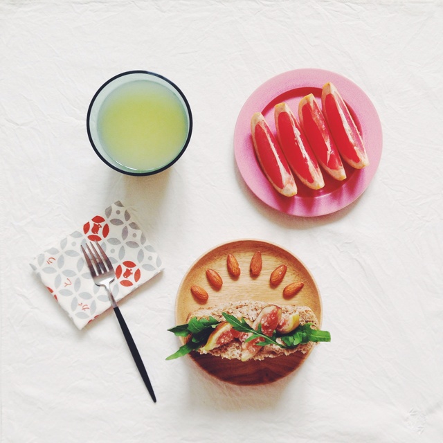 全麦面包夹无花果芝麻菜 小青柠汁 西柚