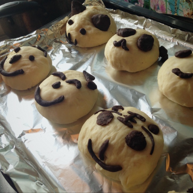 刚捏好的样子,烤出来粘不住。why。