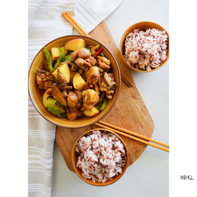一直是用类似的方法炖鸡,黄焖鸡的重点在于鸡的种类吧,红米饭和白米掺和着来,辣椒要选最辣的才够味儿和下饭...