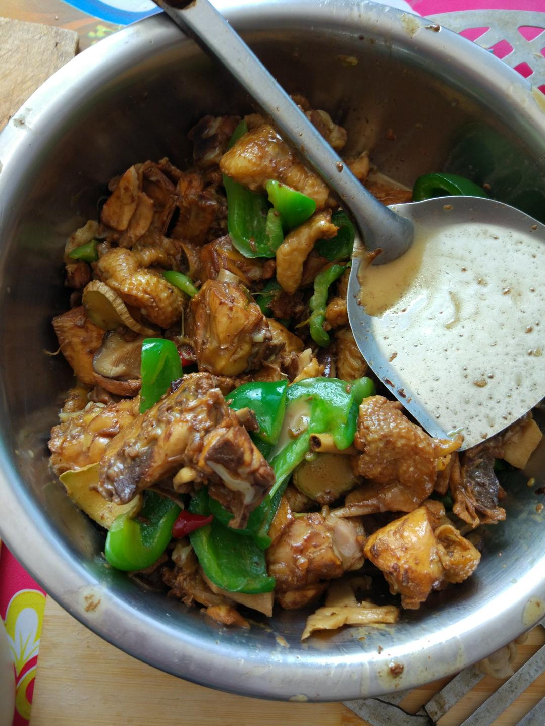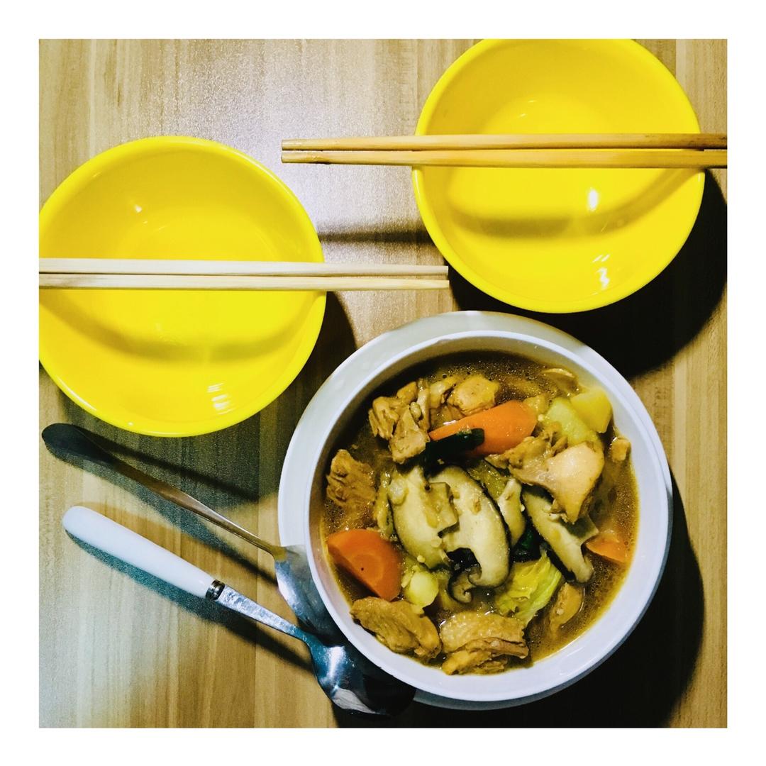 不知道为什么糖一直化不开 加了点红烧汁强行上色😂感觉香菇比鸡肉还好吃哈哈哈