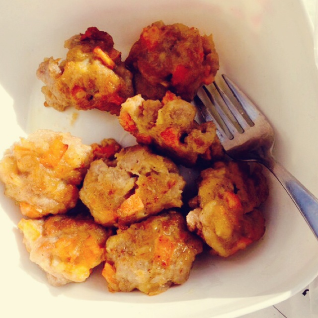 今儿午餐整快捷方便的,没有香菇酱,但把香菇切丁炒香放一勺黄豆酱,倒入泡香菇的水,虾丸鱼...