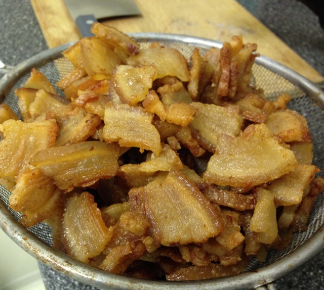 加拿大是没有吃猪油滴习惯,好久没吃猪油渣了,今天跑华人超市,买了猪皮肥肉自己炼…真TMD香