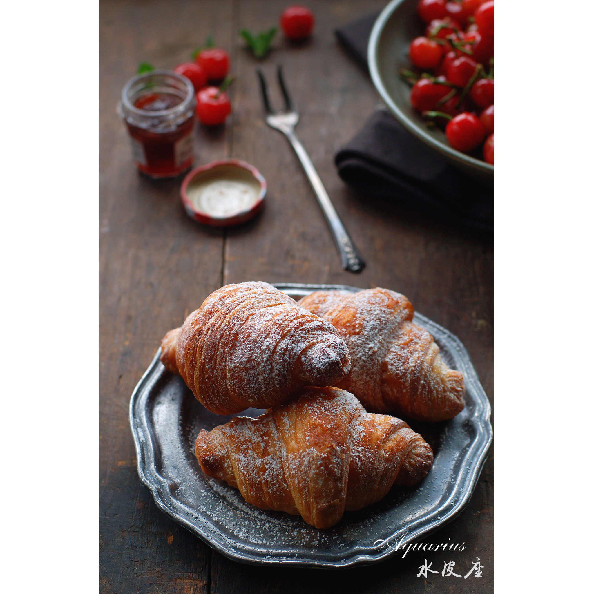 周末被可颂虐得够够滴😓。在麦德龙买的酥皮面团,本以为就切一切、裹一裹、烤一烤辣么简单,然鹅,外形倒是有点像了,切面完全不...