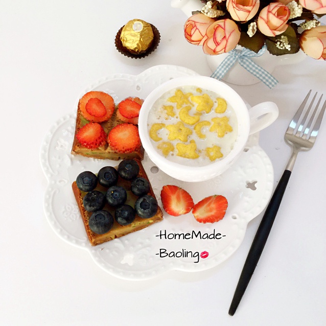 迷迭香佛卡夏+香蕉奶昔+草莓+蓝莓。