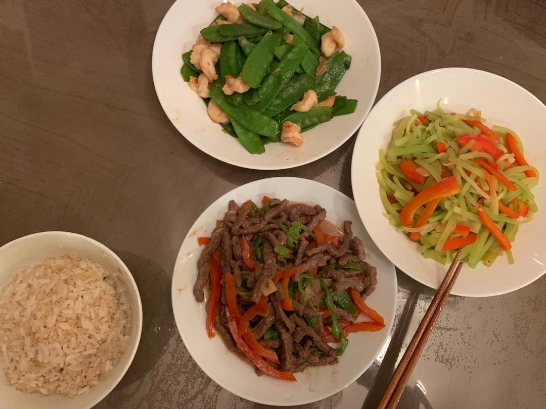 两个人的晚餐啊~ 糙米饭最健康了