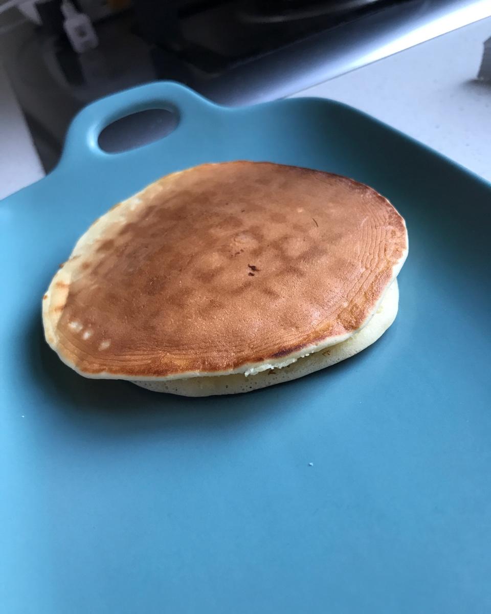 一直想着松饼的快手,结果一直让别的占了时机没做,今天终于拔草啦,大约全蛋打发的不够,感觉饼的厚度略显不够,但是口感软绵香...