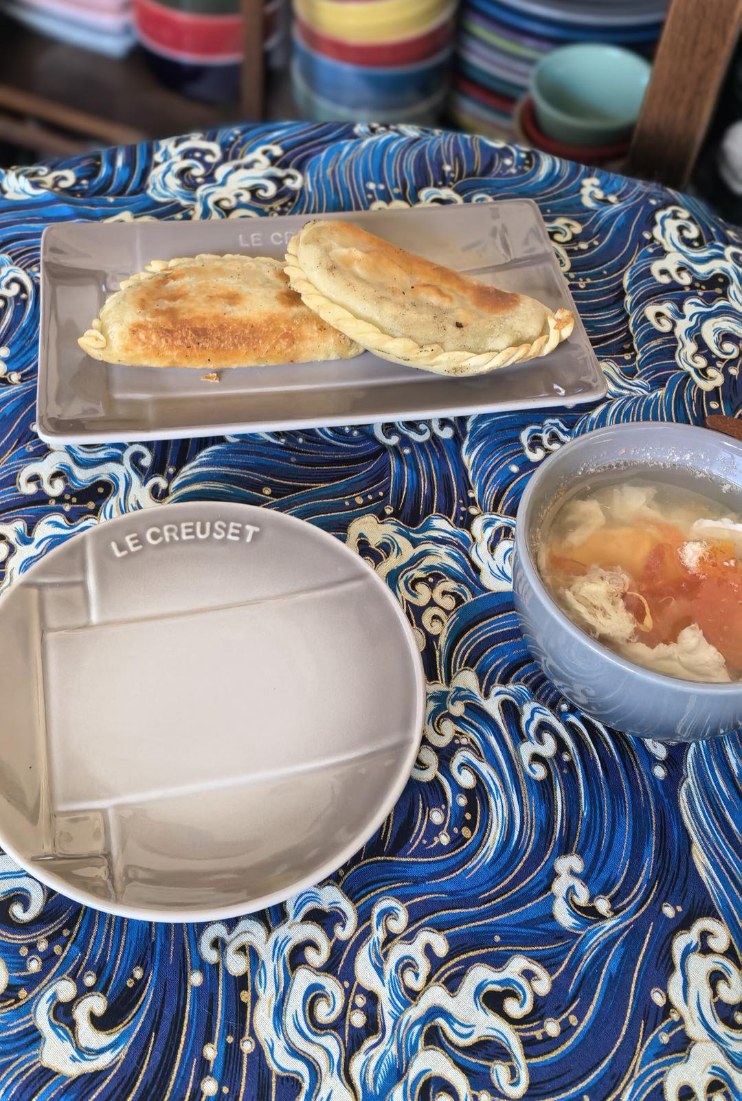 韭菜盒子 西红柿鸡蛋汤