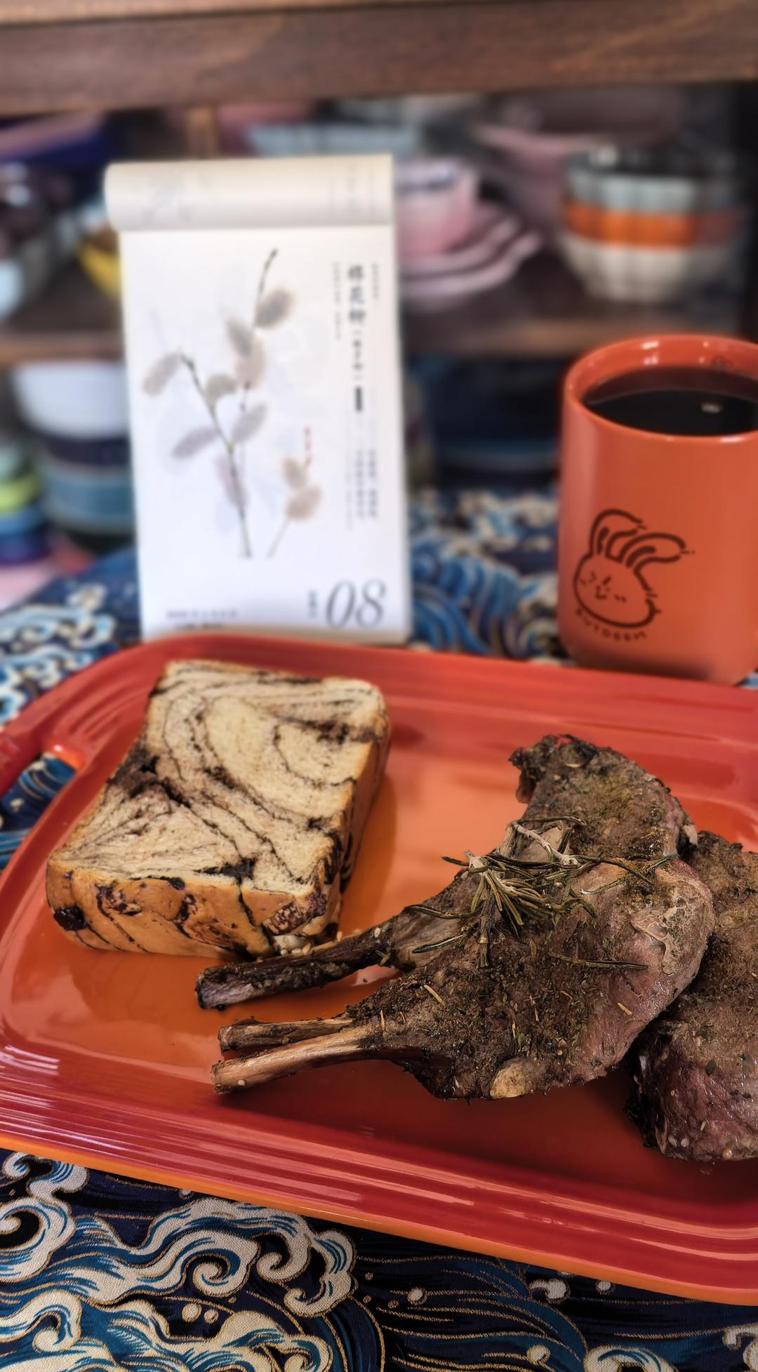 小羊排 巧克力吐司 青柑普洱 昨天的早饭