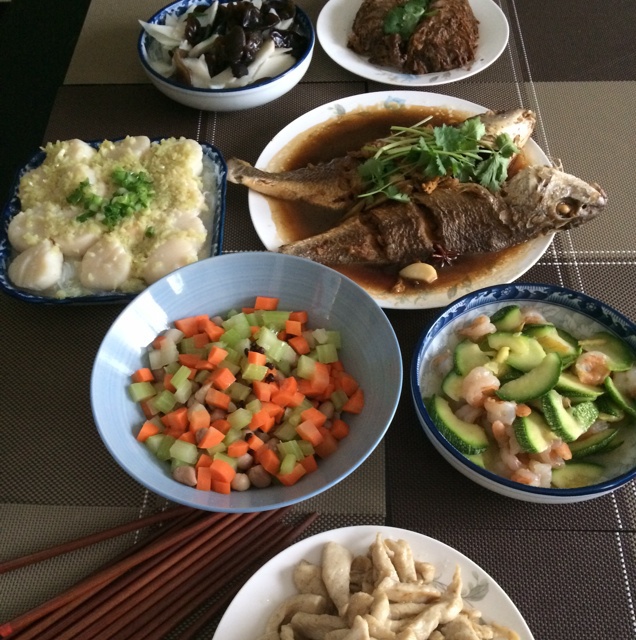 今天儿子同学一家三口来做客,早上八半开始准备工作。知道那两条鱼是从哪炸的么?说了得乐坏了你们,在车库里支锅炸的o(^_-...