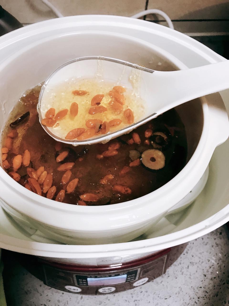 深夜补品,当归黄芪红枣枸杞鸡蛋炖,气血双补,看起来很黑主要是加了红糖哈哈~姐妹们一起补起来美美哒ʚتɞ