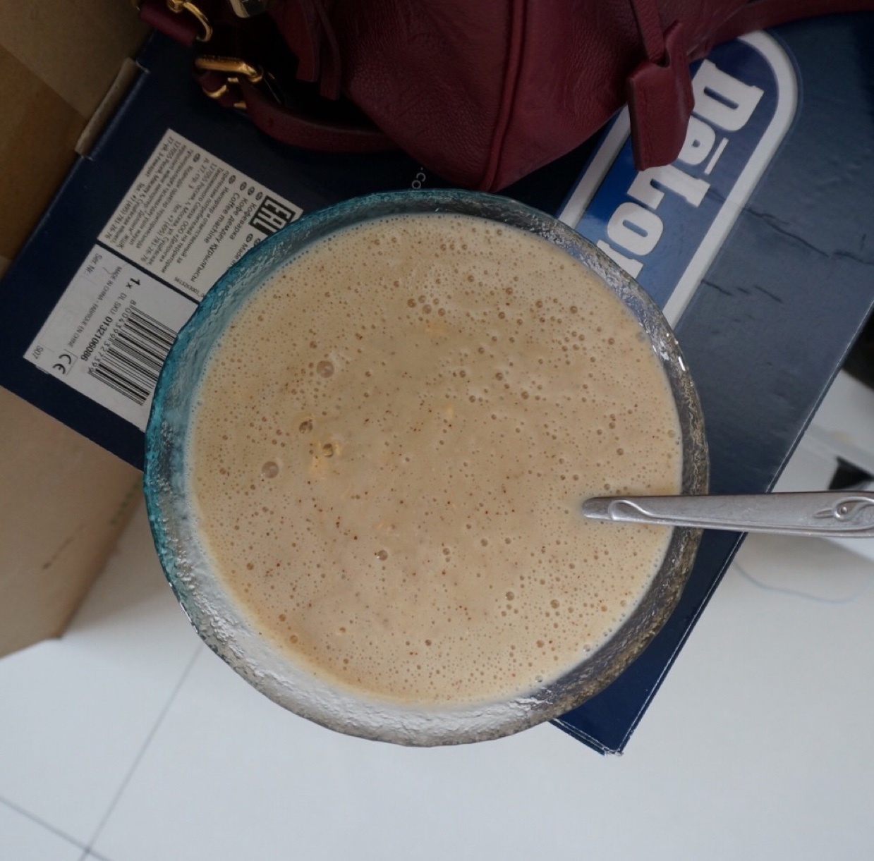0813早餐:桃胶银耳莲子百合枣+牛奶+麦片,因为煮的时间短了,不打糊就没有粘稠感,所以打成了糊糊状~#我吃早餐的时候最...