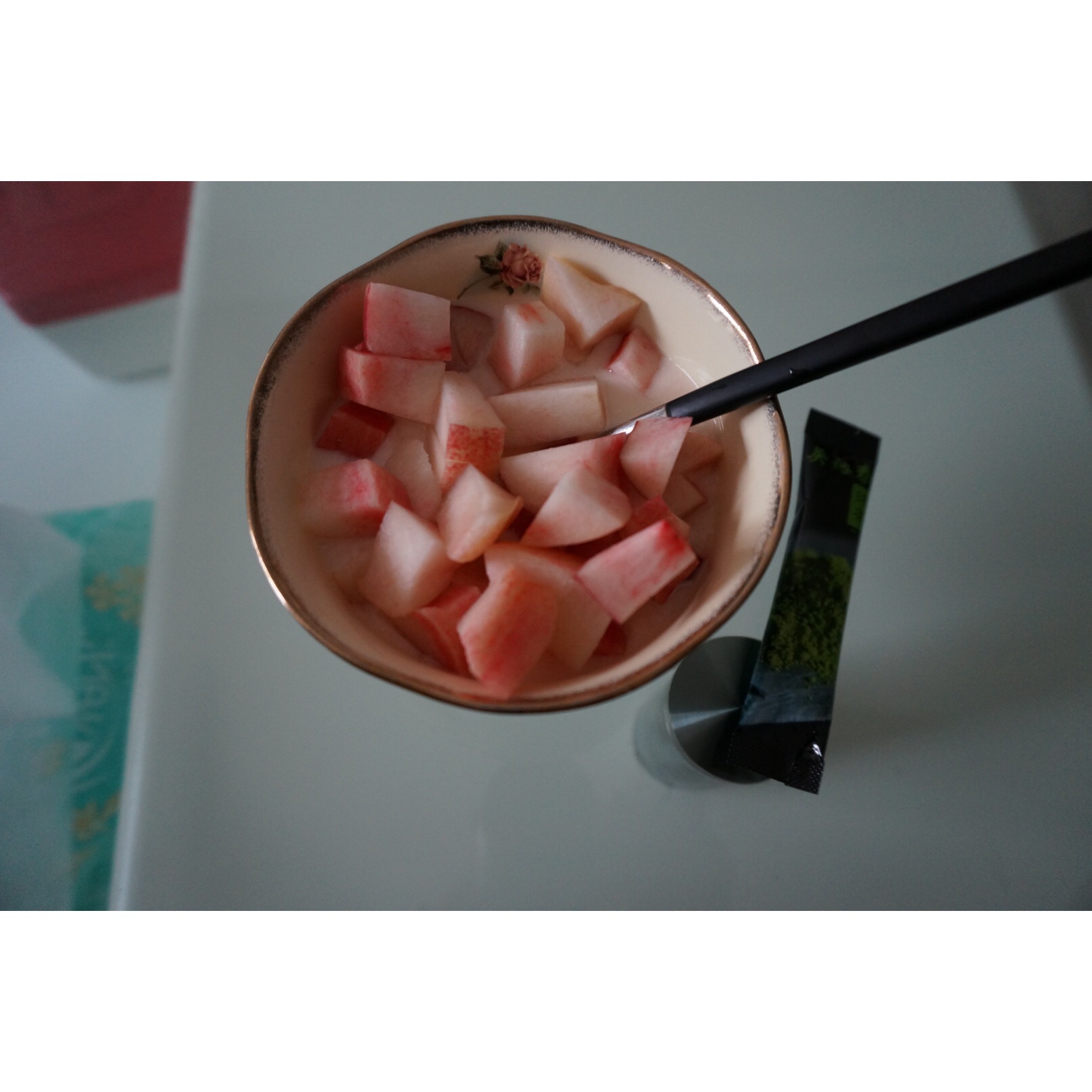 0901早餐:200g酸奶+桃+抹茶