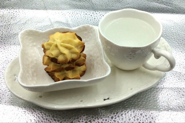 牛奶泡中式的大米爆米花,就是一只烧的黑黑的炉子,“砰”一声就爆好的那种,中国版~~