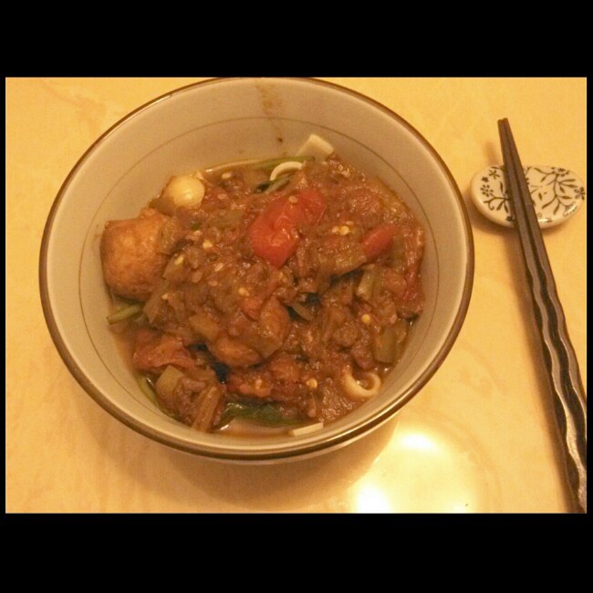 油豆腐丸子番茄青椒豆豉拌面
