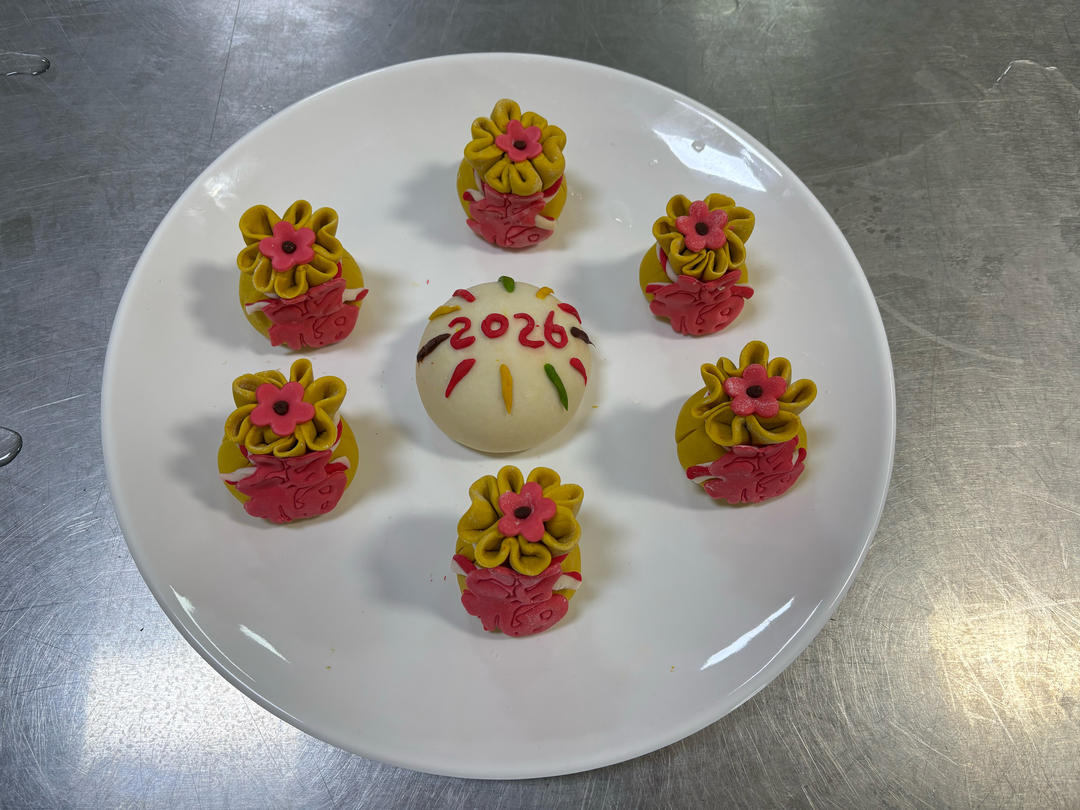 《椰蓉奶黄包》金黄的奶黄馅,包裹着绵软的椰蓉,再贴上一个小小的“福”字,瞬间有了家的味道。每一口都是满满的祝福...