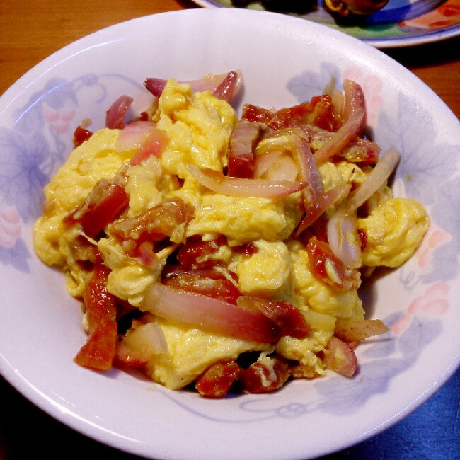 #洋葱叉烧炒蛋#