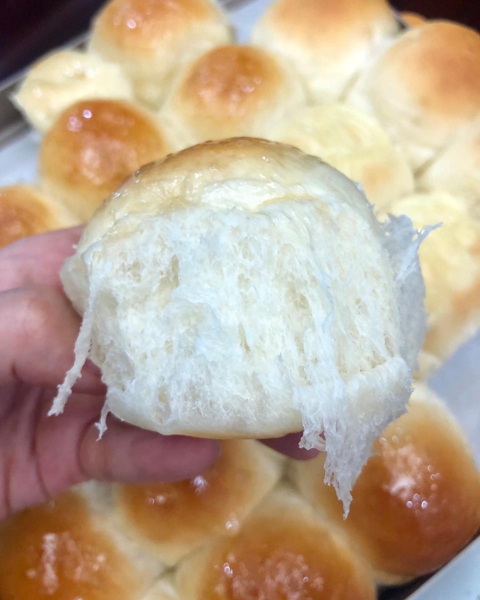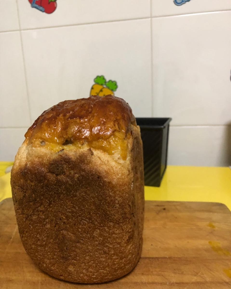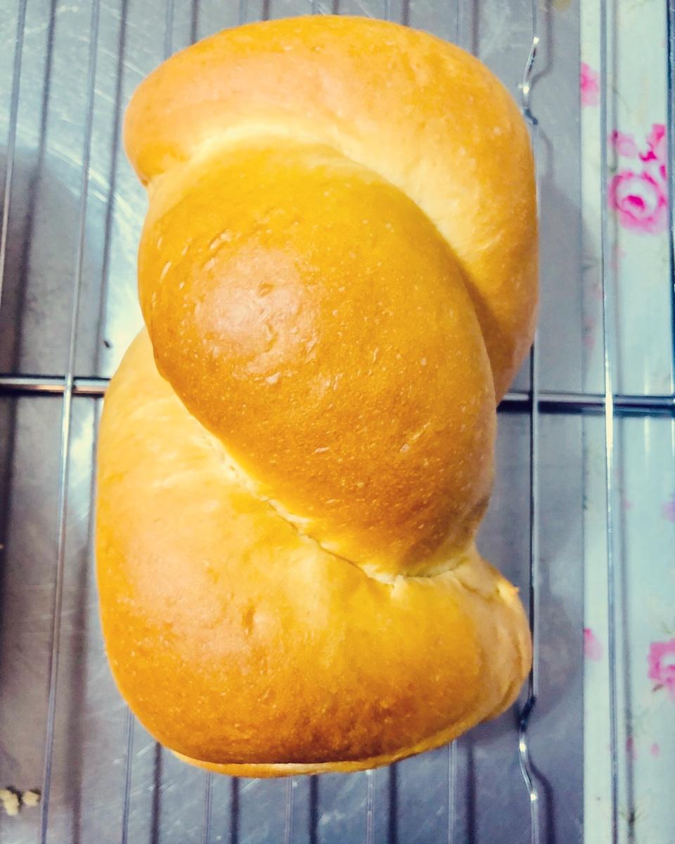 第一次做出松软的面包,好感动。就是不知明天吃会不会干。面包机的imix程序两次,再加10分钟,一发60分钟,二发35分钟