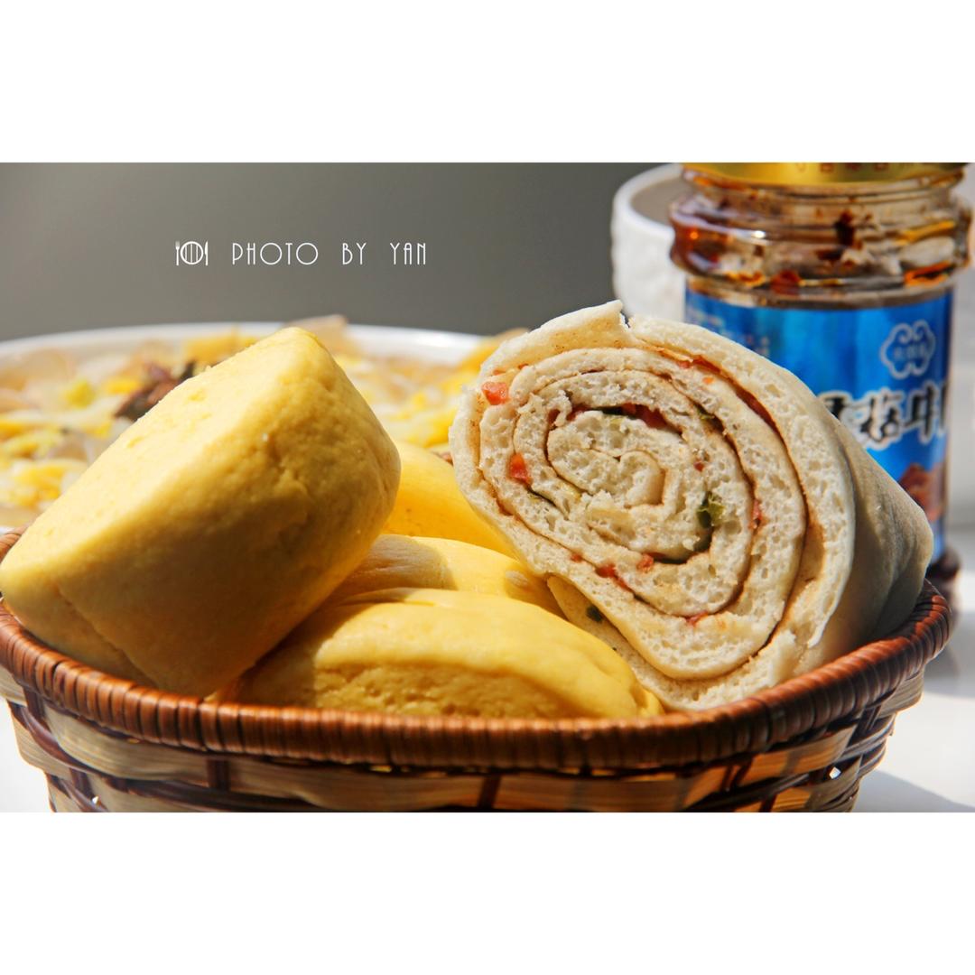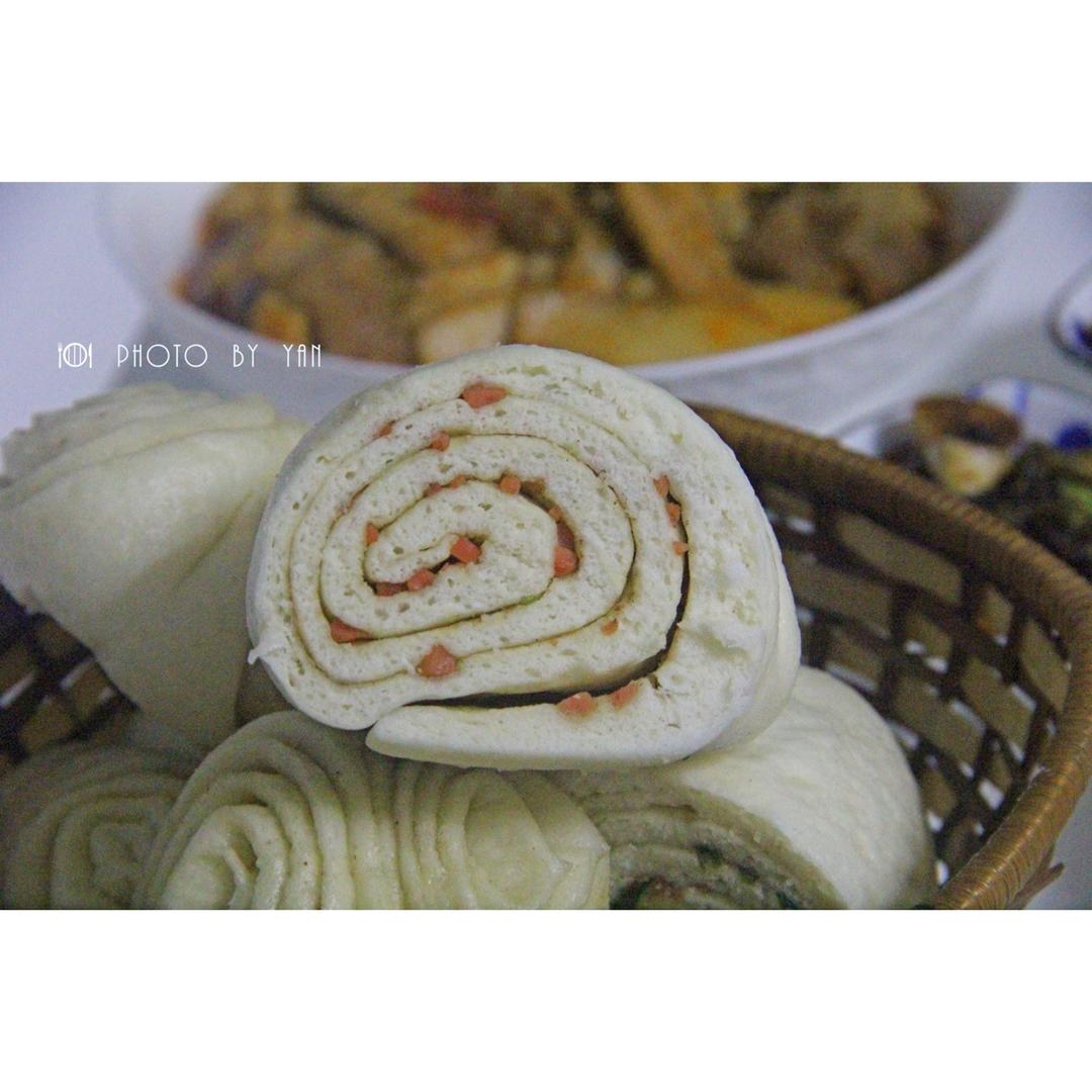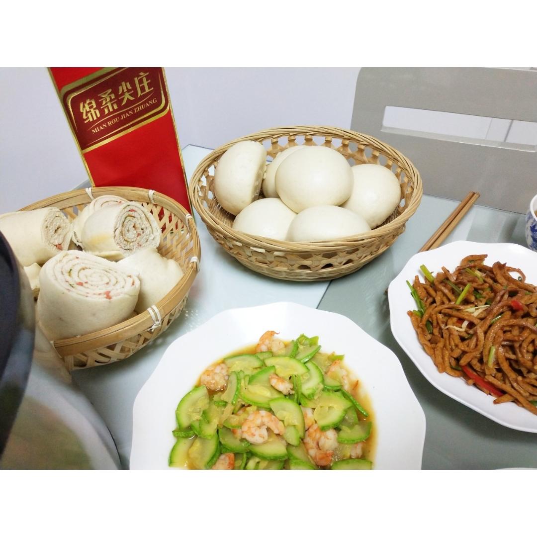 又蒸了馒头跟五香火腿油卷,收到一致好评。