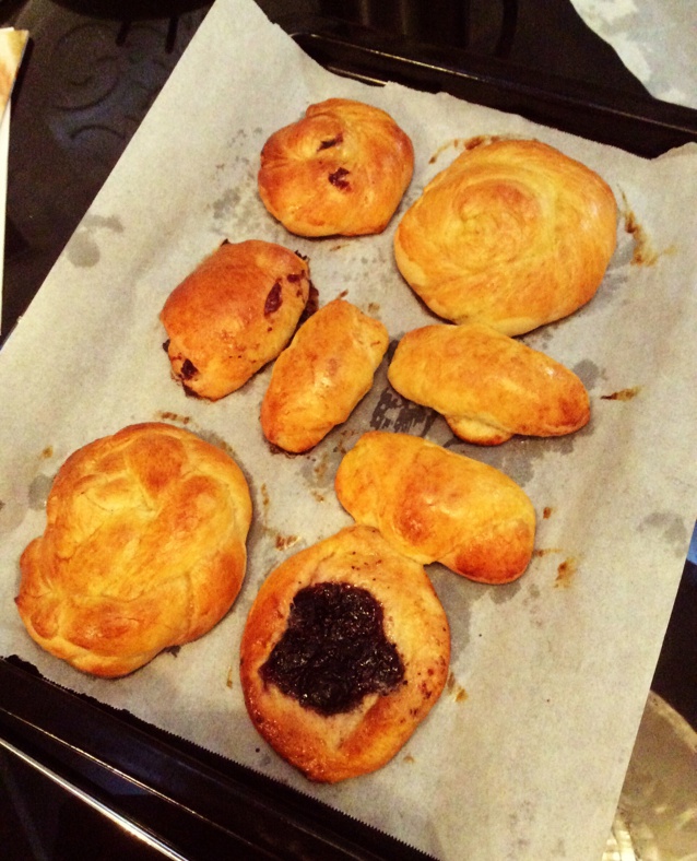 1L的淡奶油开了就要赶快消耗,做这种面包很好,方子里没有鸡蛋,自己加了一个鸡蛋,自创了几个风格,呵呵,有加肉松的和果酱的...