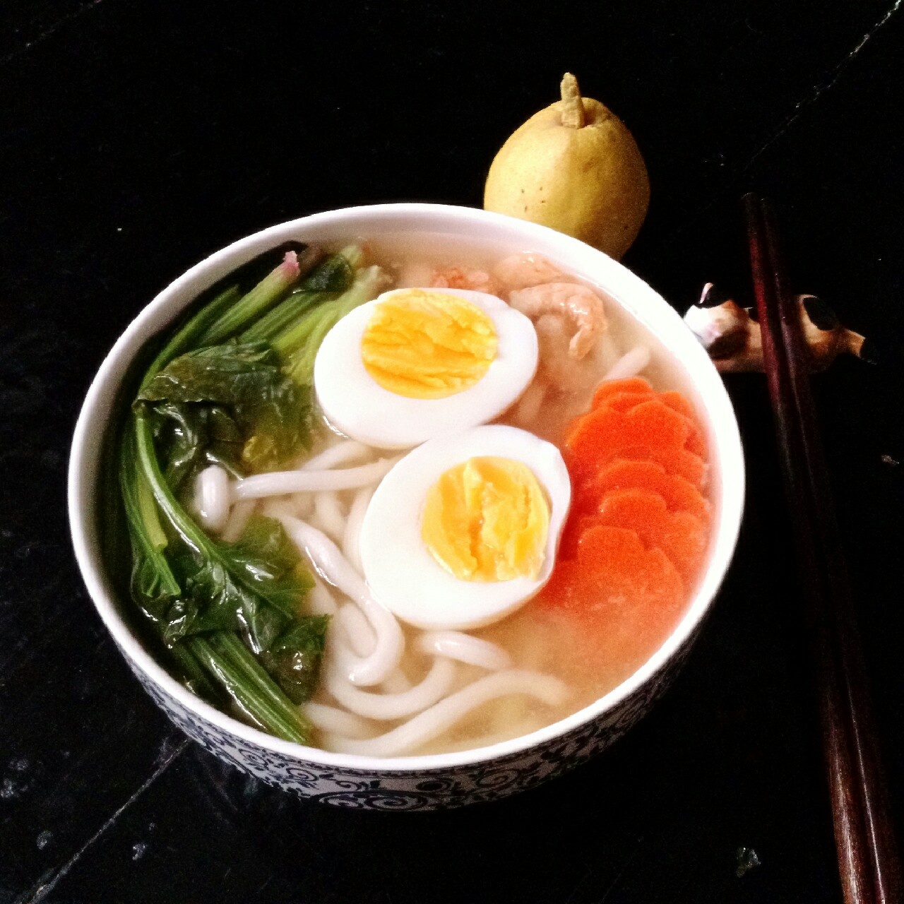 今日早餐:味增乌冬面+小香梨…