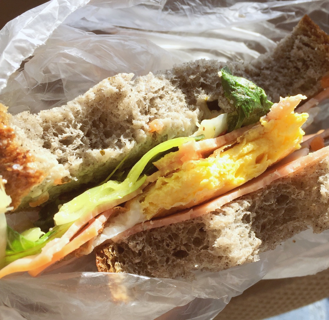 忙叨狗在车上吃的油菜三明治...=V= 其实吧...还真的挺好吃的...