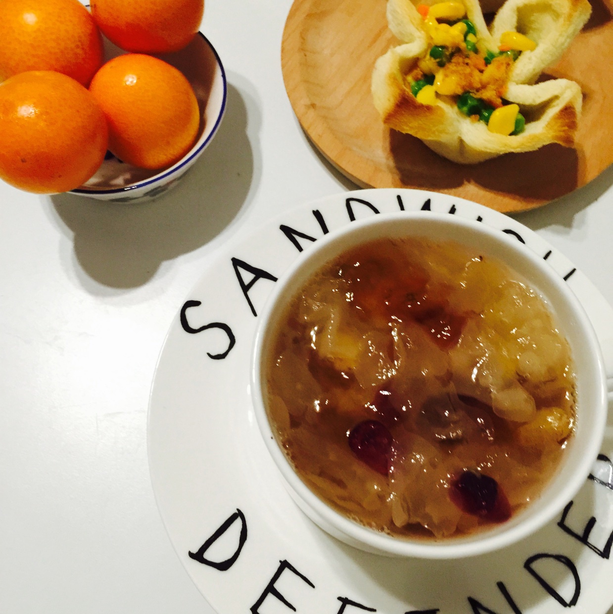 桃膠銀耳羹+土司塔+水果