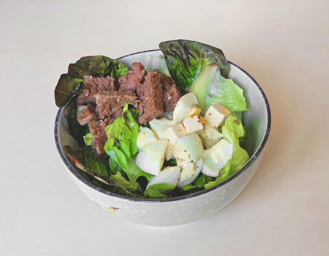 空腹快走改剧本后的蛋白质早餐,即便是不粘的纸无油总是有点粘。于是用香菜叶子垫了一下豆腐,完...