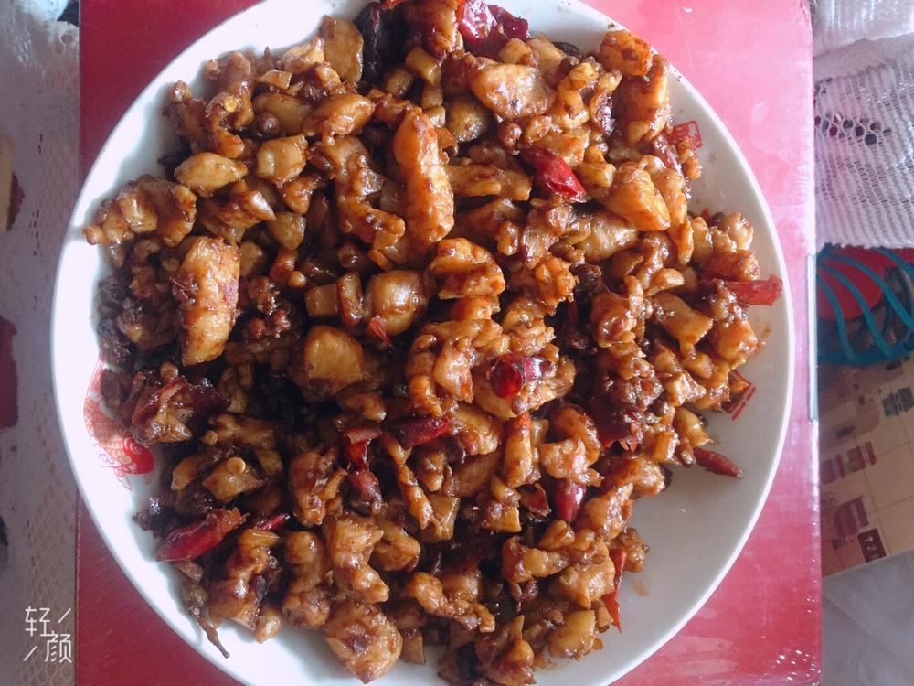 辣子鸡丁,讨好妈咪自己做,放的满满肉丁,外面的一盘就30多还比较少,自己放特别爽,中午吃辣...