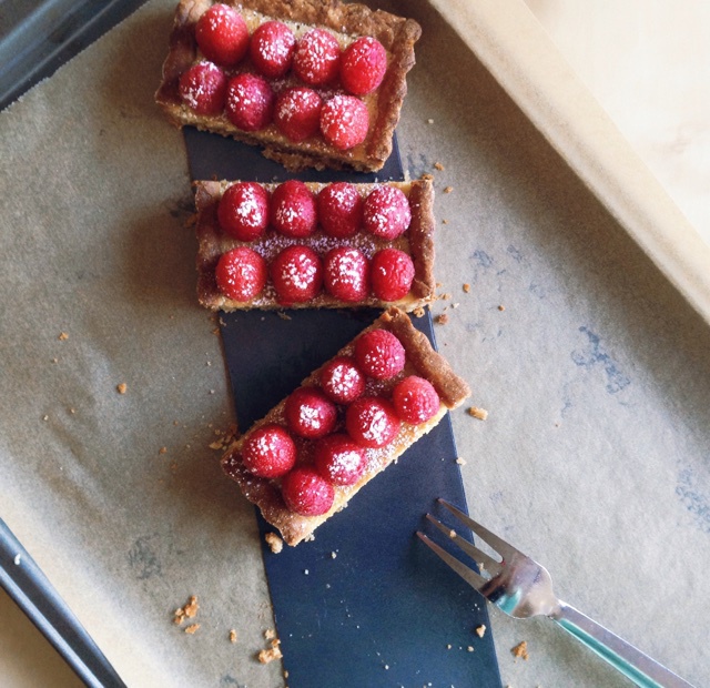 树莓杏仁奶油塔。给过生日的朋友做的,瞬间被干掉!