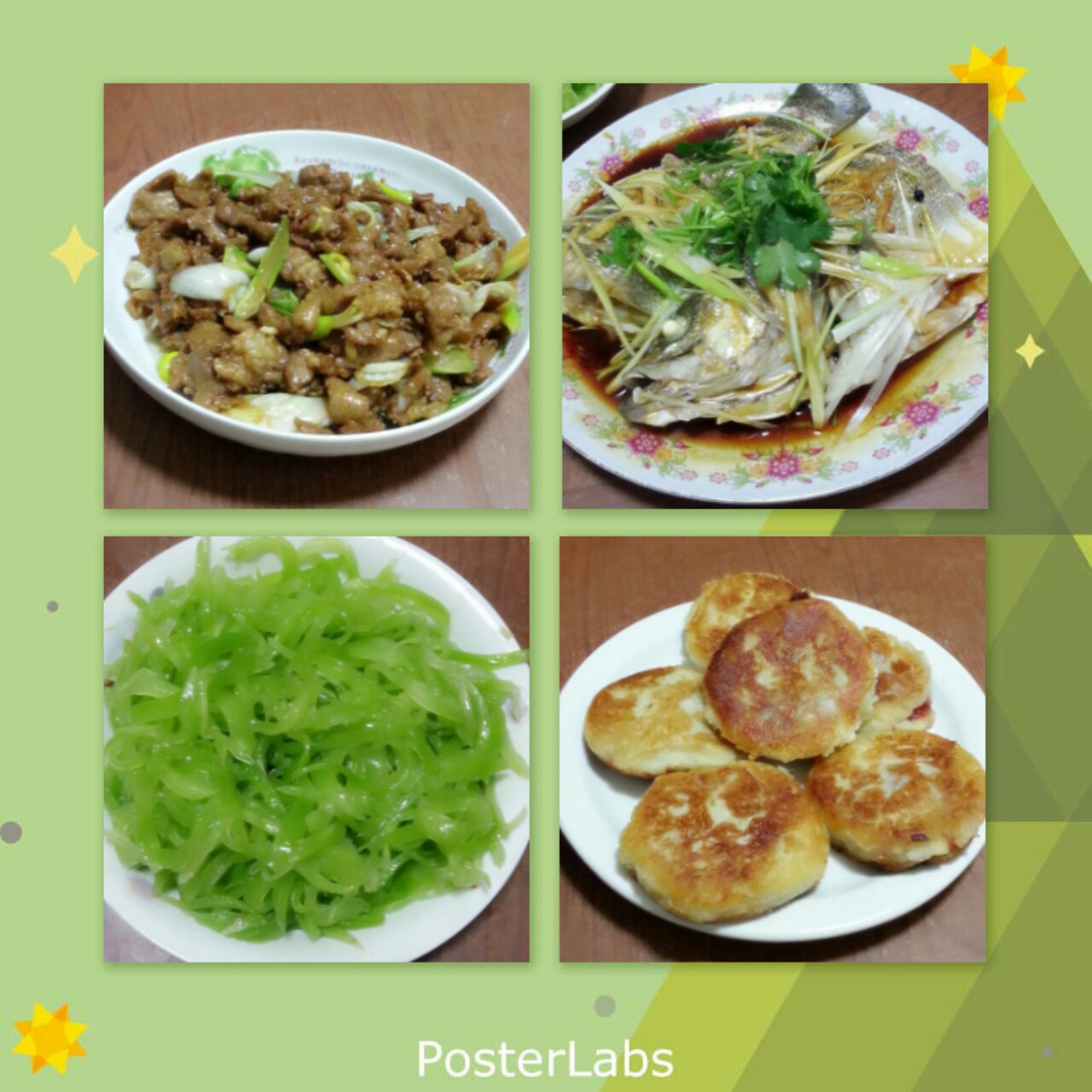 昨天的晚餐,补发一个!清蒸鲈鱼、葱爆羊肉、炝青笋、山药饼~