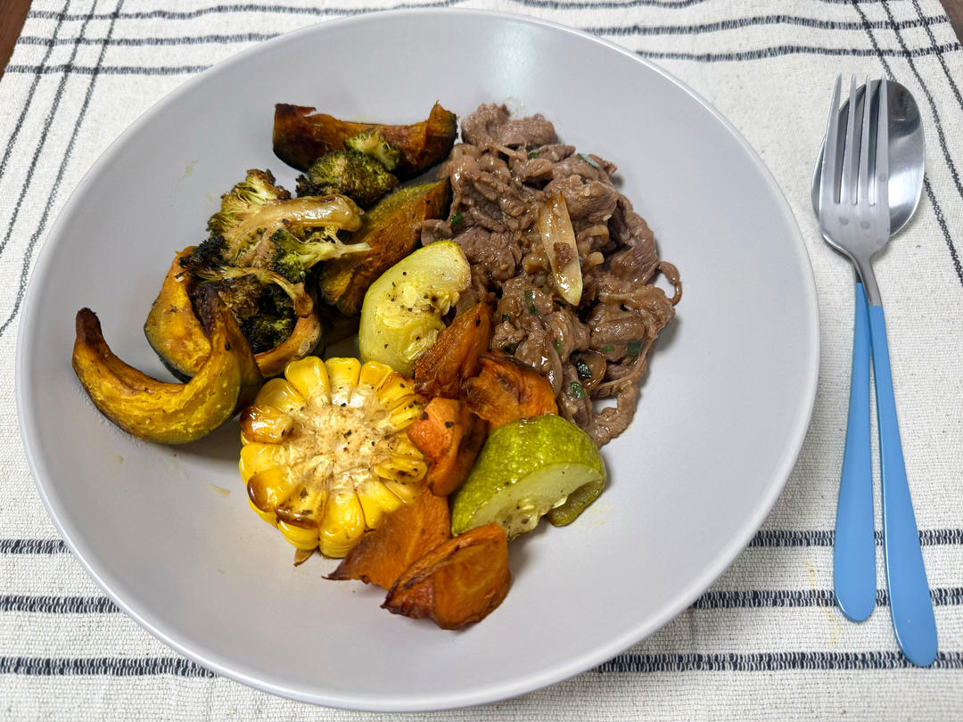 今日午餐杂蔬炒瘦肉+蒸土豆🥔