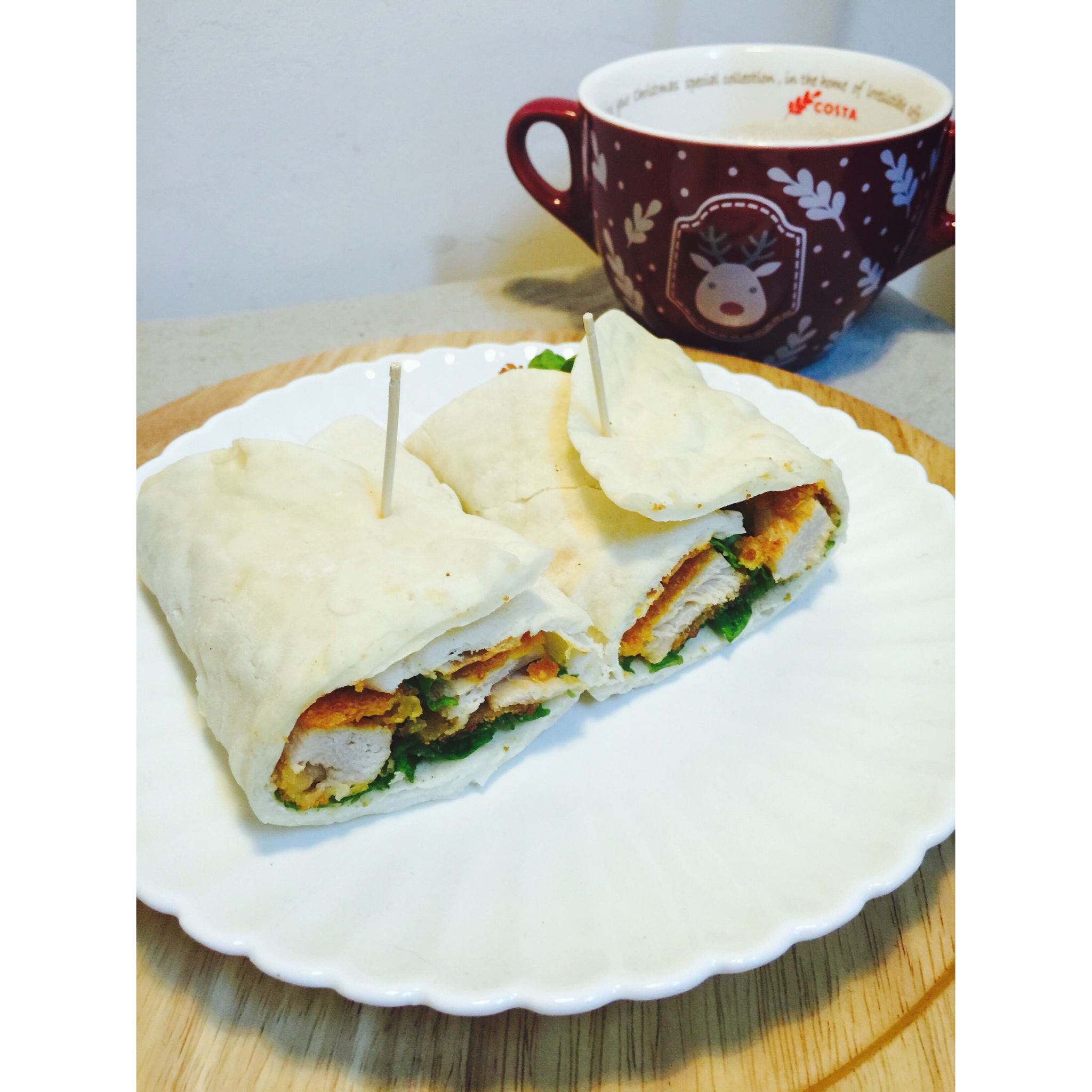 早餐:鸡肉卷+花生豆乳