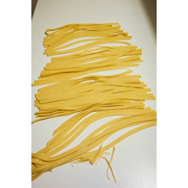面条:25g全麦粉+90g面粉+1个鸡蛋,压面机到#5,那披萨刀切宽面。
