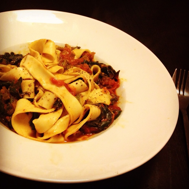 番茄菠菜绝对完美组合。手擀面总让人感觉比其它面好吃啊!...