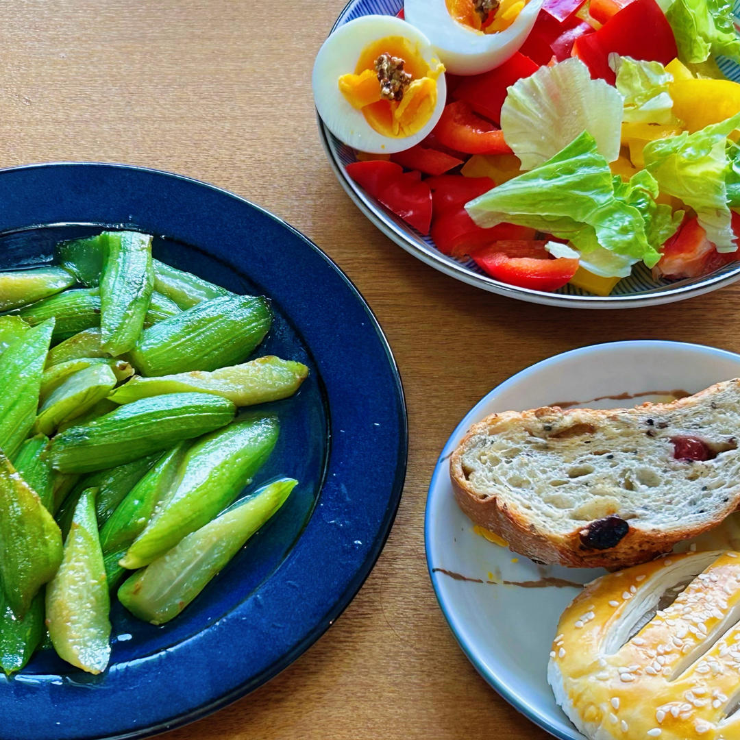 素炒丝瓜 老婆饼 欧包 生菜 彩椒 煮...