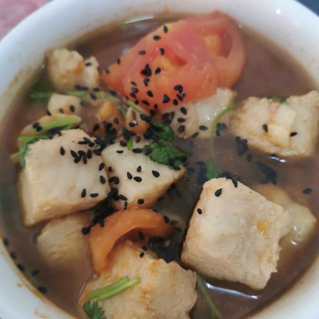 最后加了两片芝士片,变蕃茄浓汤啦。