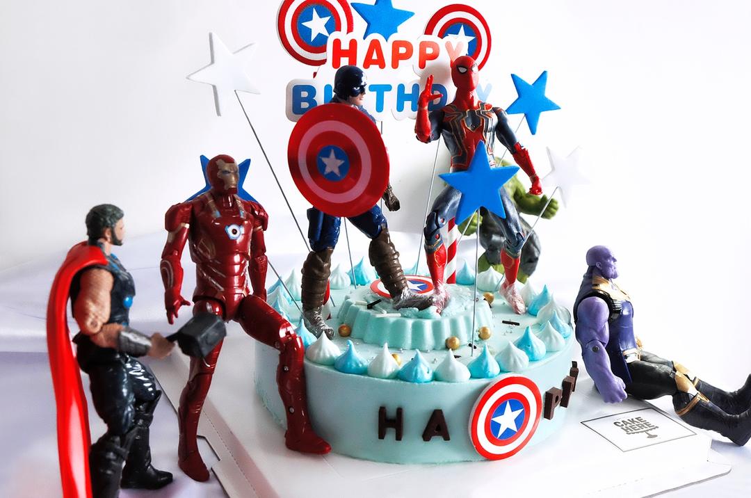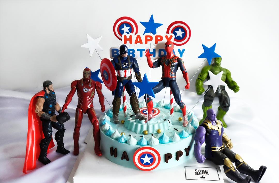 复仇者联盟蛋糕,没有经验,选的人物摆件都巨大,最后摆出来感觉就是很热闹🤦♀️