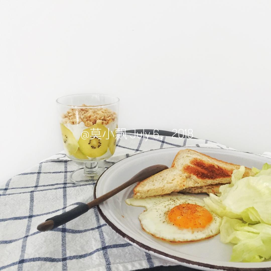 谷物酸奶+吐司鸡蛋+生菜。今天吃的比较简单,但拍照比较浪费时间😂