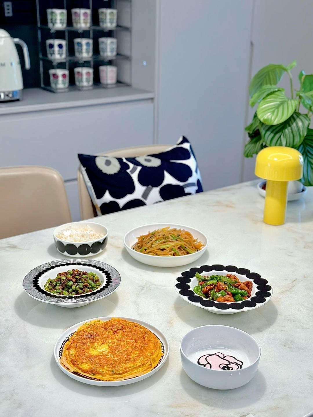 我家饭模许久未出镜啦,今日有它陪伴的午餐,韭黄炒鸡蛋、黄鱼烧豆腐、酸菜...