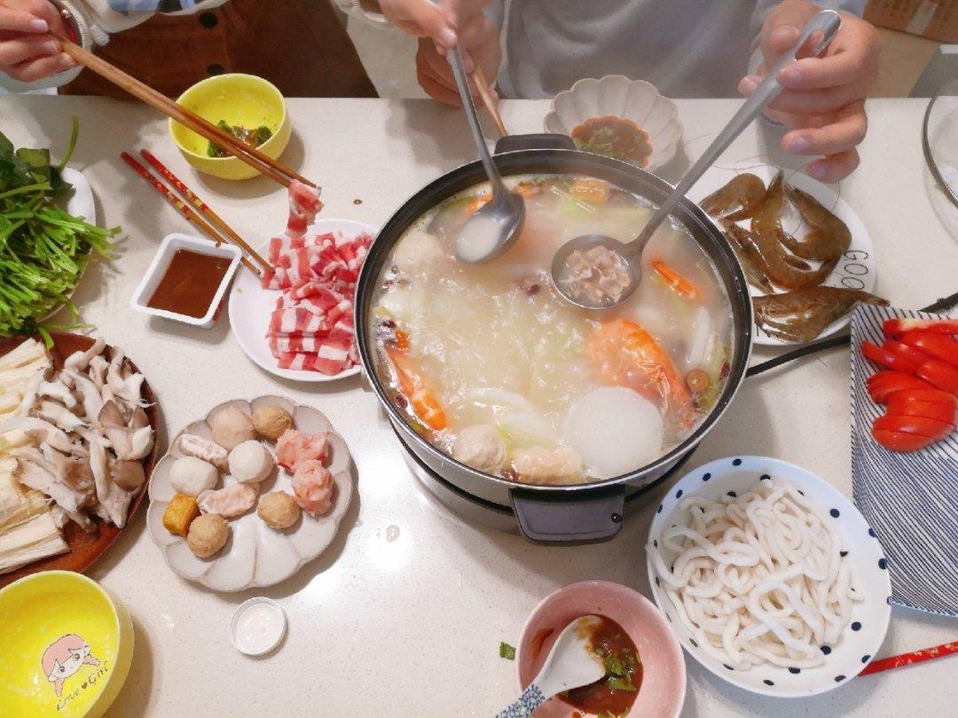 天冷了,可以吃火锅了,没用现成的火锅底料,加了几勺黄记煌海鲜汁,味道非常鲜美。