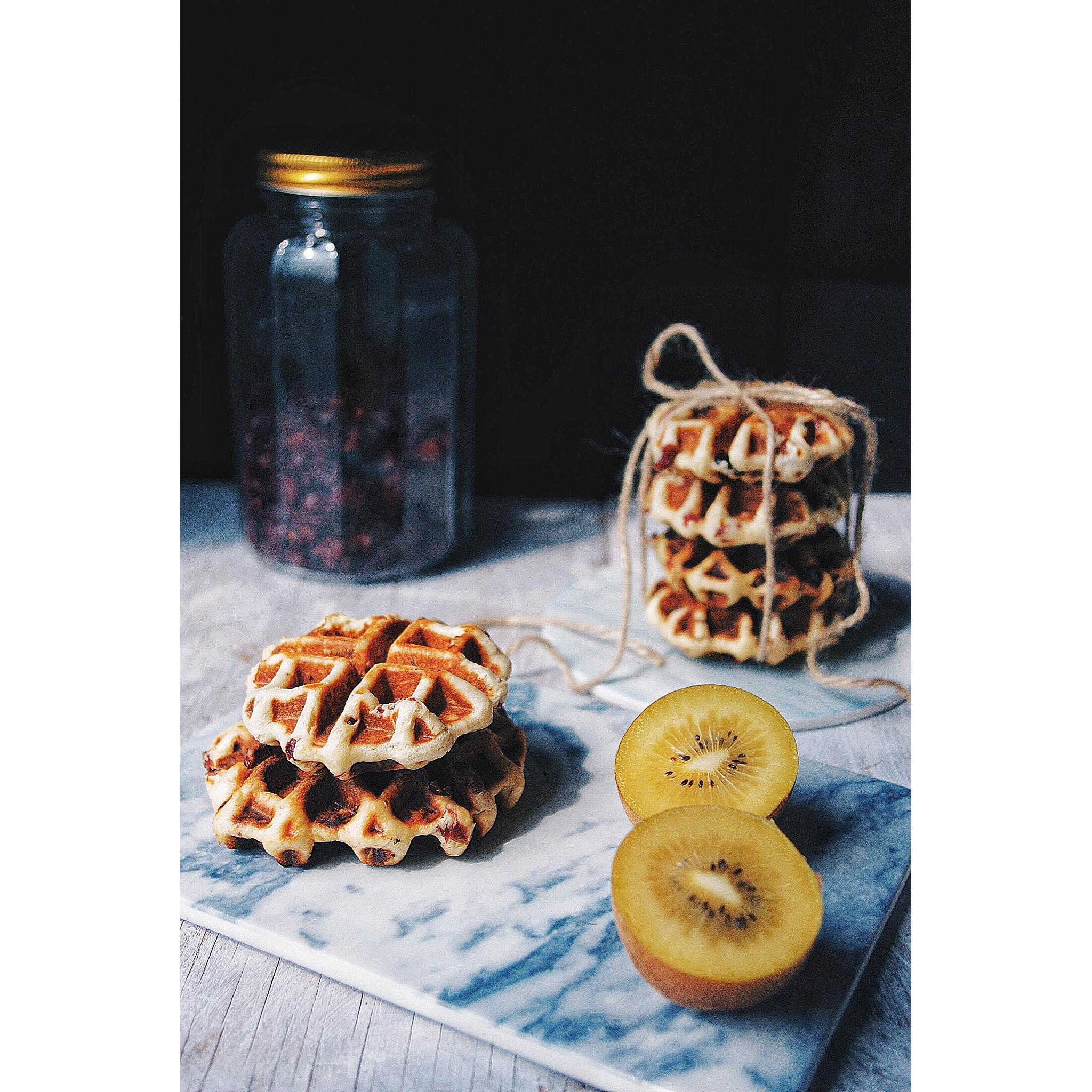 用我王纸@熊猫么么 给的蔓越莓做了华夫