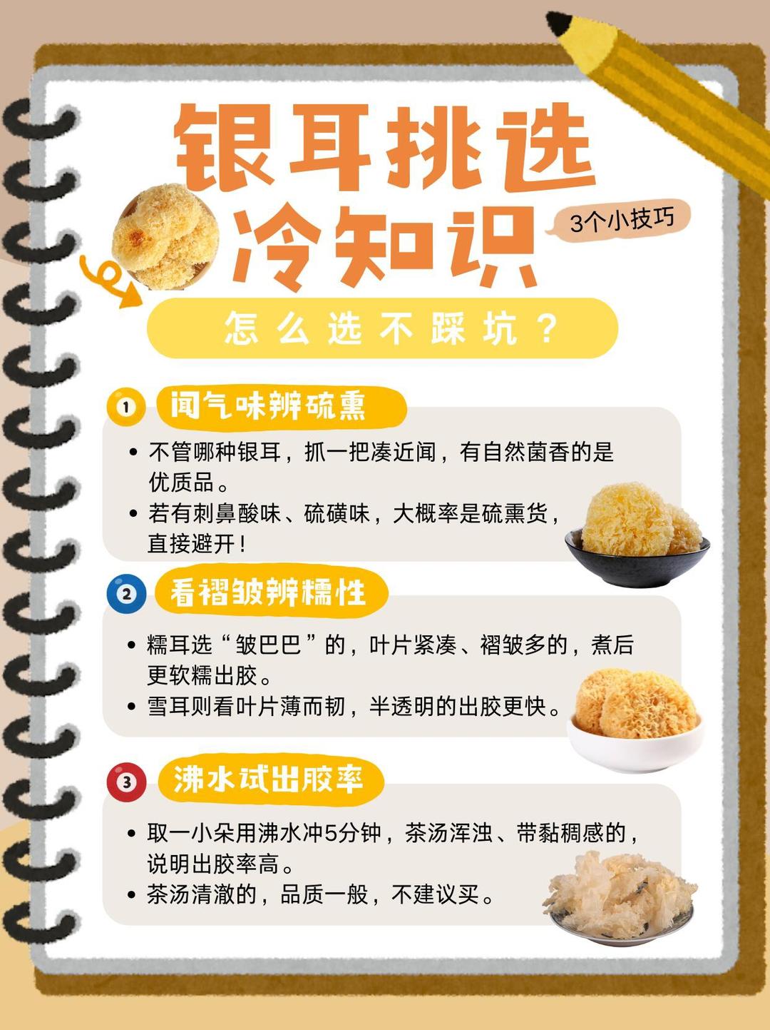 每次买银耳都怕挑到不出胶担心踩雷?分享3个简单实用的挑选技巧👇